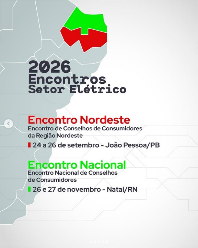 O Conselho Nacional de Consumidores de Energia Elétrica (Conacen) divulgou nas redes sociais o calendário dos encontros do setor elétrico em 2026.