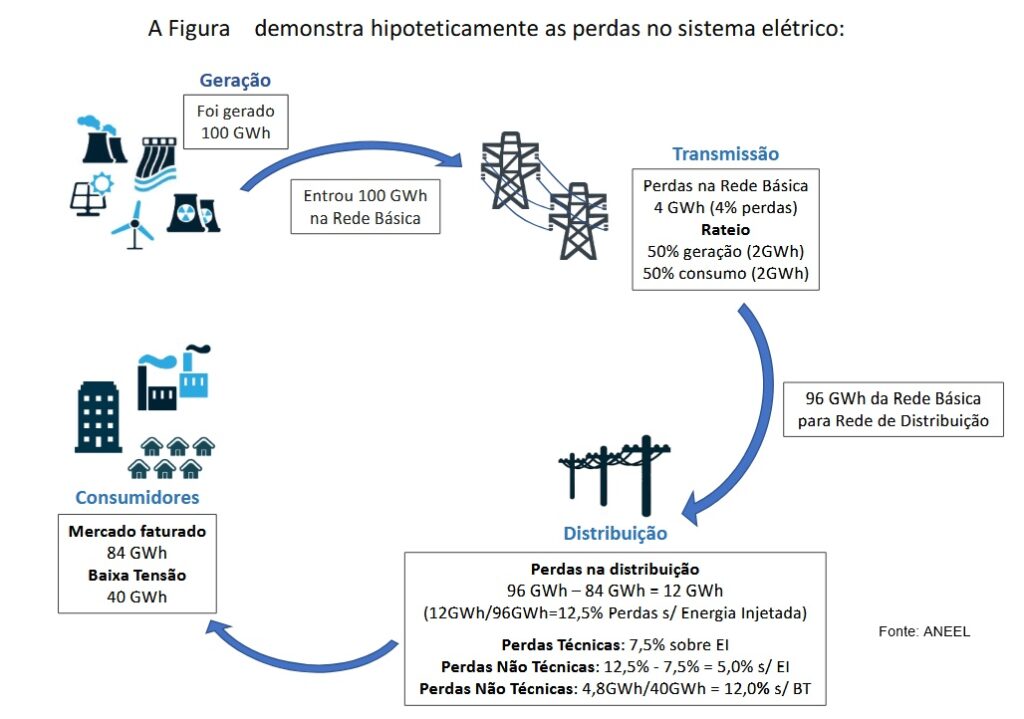 Essas perdas, inerentes a qualquer sistema de distribuição, são calculadas pela ANEEL considerando a operação eficiente das redes e repassadas às tarifas.